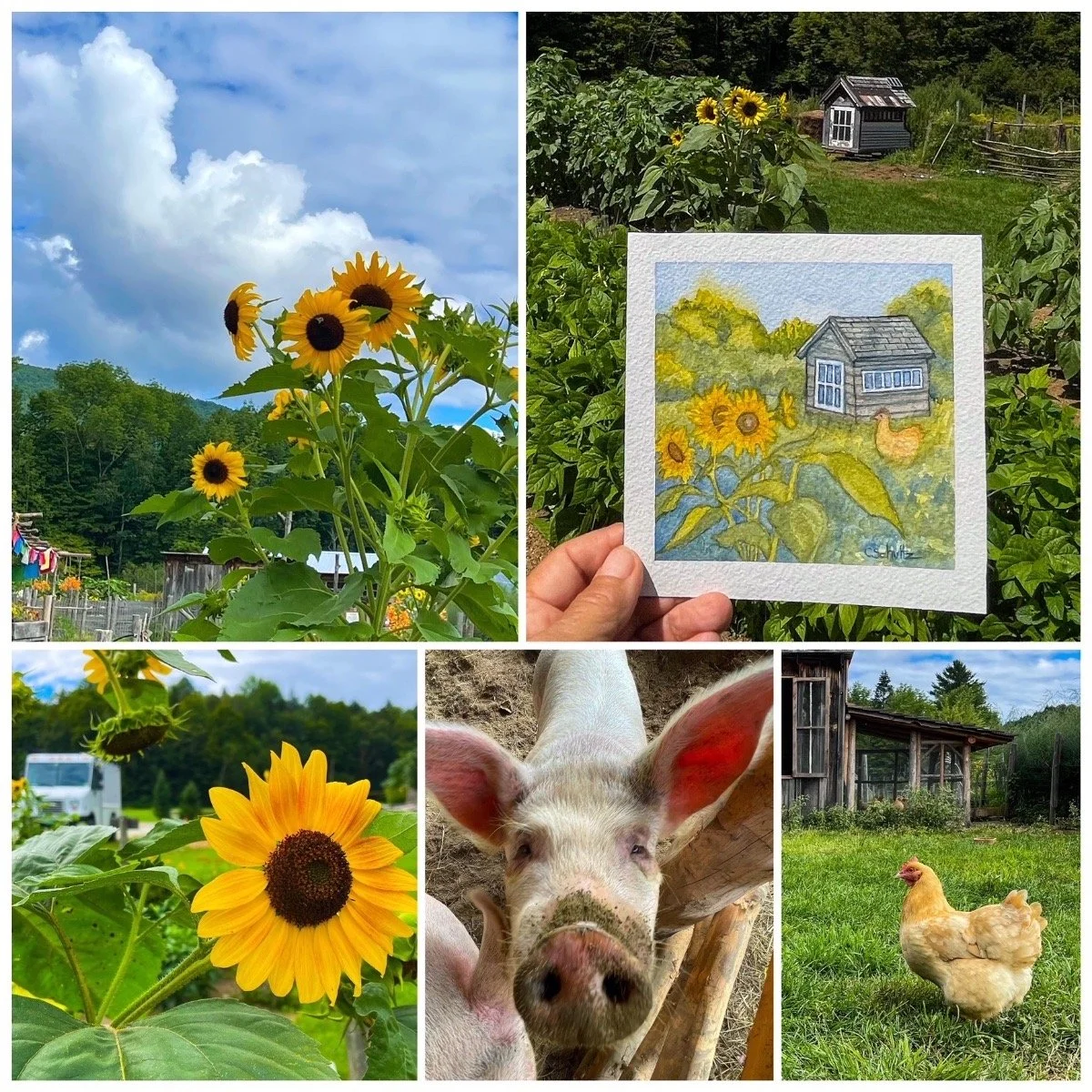 FRAMED SUNFLOWER FARM. 12” x 12” x .5” $150